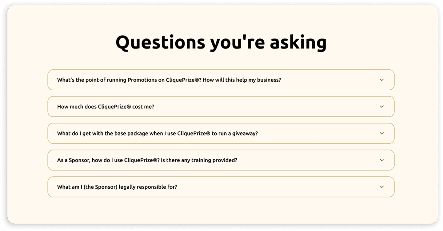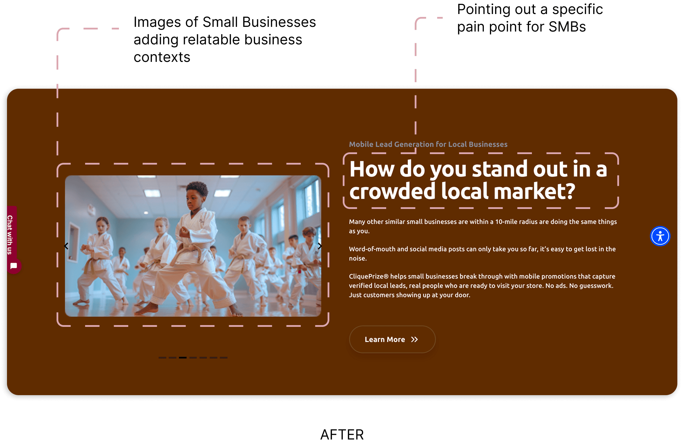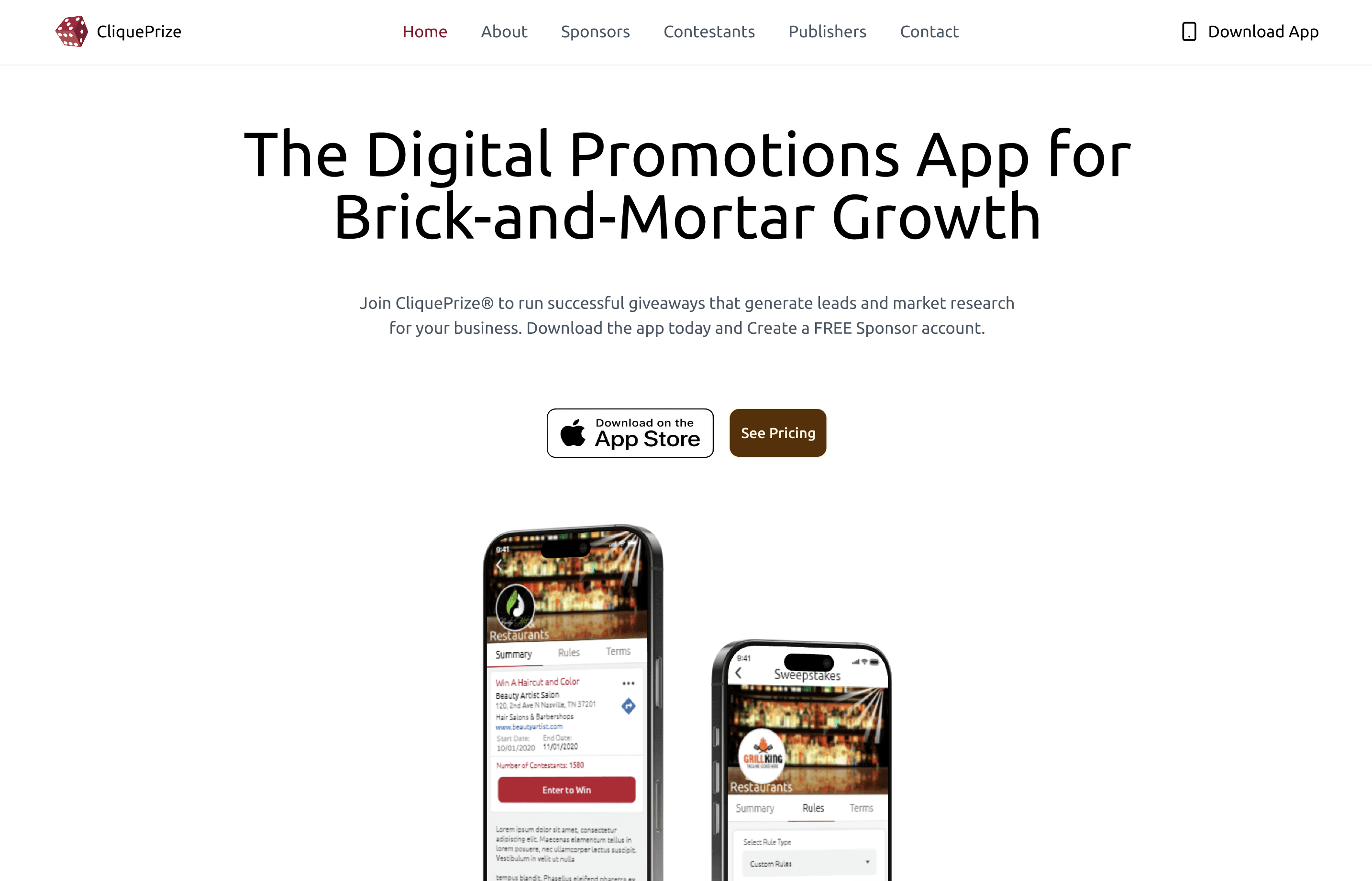CliquePrize's marketing website wasn't connecting with its core audience: small business owners. I redesigned the entire site to speak directly to their pain points, replacing vague messaging with clear value propositions.