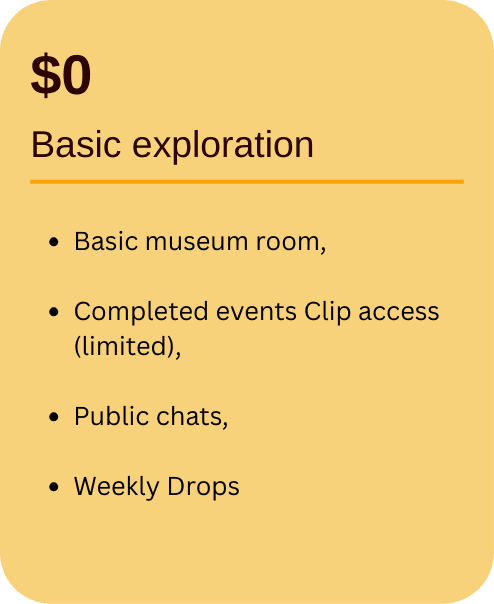 Users collect points through participation and unlock historical artifacts to display in their personal 3D museum space, making cultural exploration tangible and permanent.