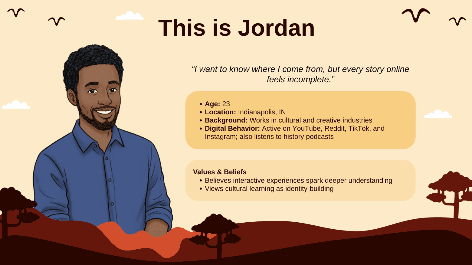 Freetown Village, a 40-year-old living history museum (live events performances), reached audiences 40 - 50+ age, invisible to Gen Z. I led research and strategy to design a platform helping young Black Americans find cultural grounding through interactive storytelling.