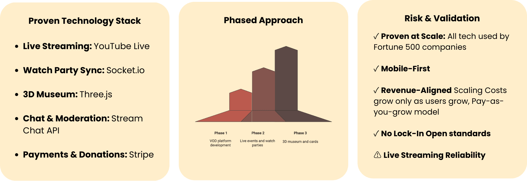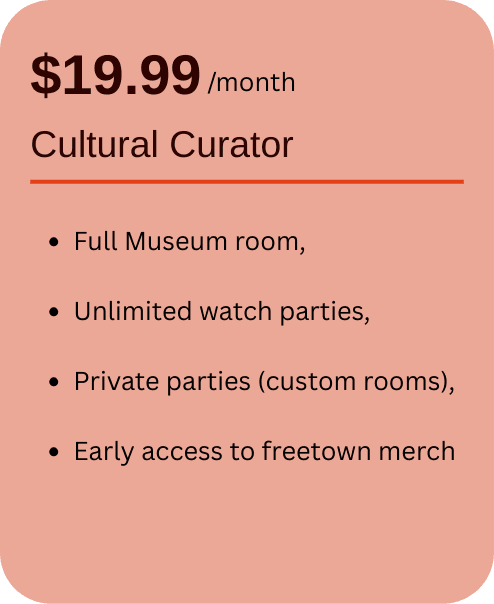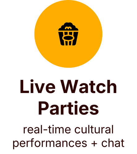 Users tune in to watch Freetown Village's live historical performances together in real-time, with interactive quizzes and community chat creating shared cultural moments.