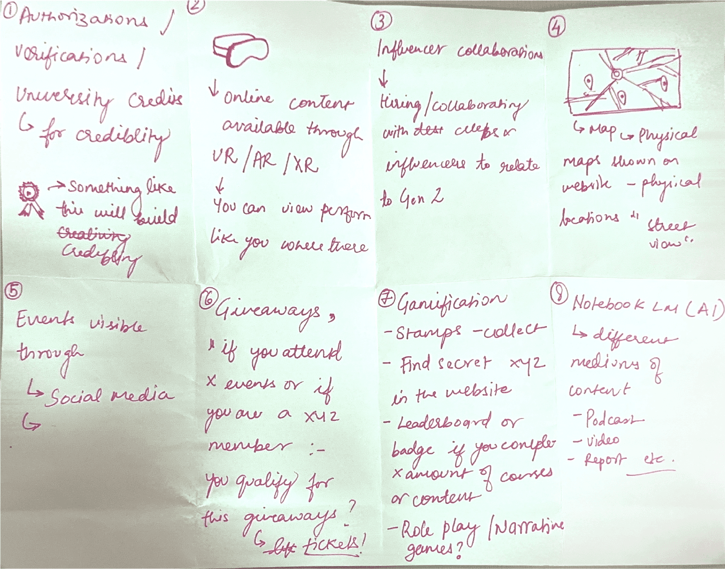 With clear user needs identified, our team moved into rapid ideation. We needed to answer: How might we help young digitally active learners connect with trustworthy and interactive experiences, so they feel more grounded in their historical roots?